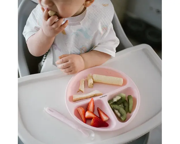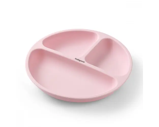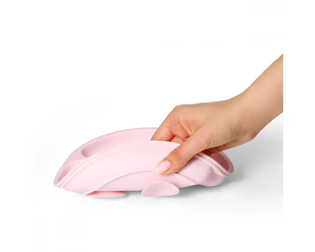 Farfurie din silicon cu ventuza pentru copii Babyono roz