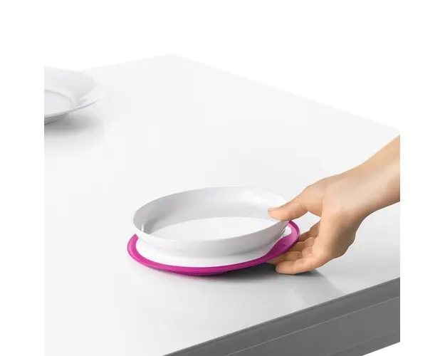 Farfuria Stick amp Stay are o baza de fixare sigura, ce adera ferm la suprafetele plane, de la inceputul, pana la sfarsitul mesei.Designul prietenos faciliteaza folosirea de catre parinti a platoului, Produsul cu denumirea Farfurie cu fixare prin suctiune roz face parte din brandul Oxo tot, se afla in categoria Animale si subcategoria