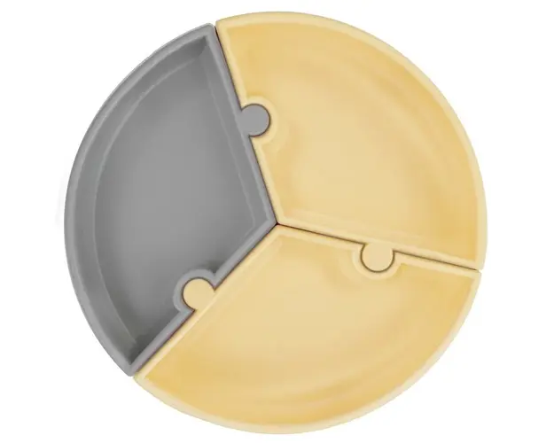 Farfurie puzzle Minikoioi 100 premium silicone mellow yellowpowder grey