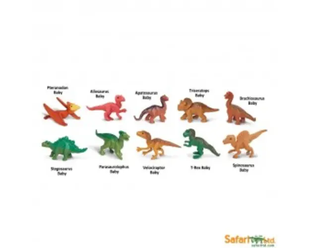 Figurina - Pui de dinozaur Set de 48 de figurine din plastic, pictate manual, reprezentand specii de pui de dinozauri. Vopseaua nu este toxica si nu contine ftalati. Dimensiunea unei figurine poate varia intre 4 si 7,5 cm. Pretul este pentru o bucata. Produsul cu denumirea Figurina - Pui de dinozaur face parte din brandul Safari ltd, se afla in categoria Figurine diverse si subcategoria