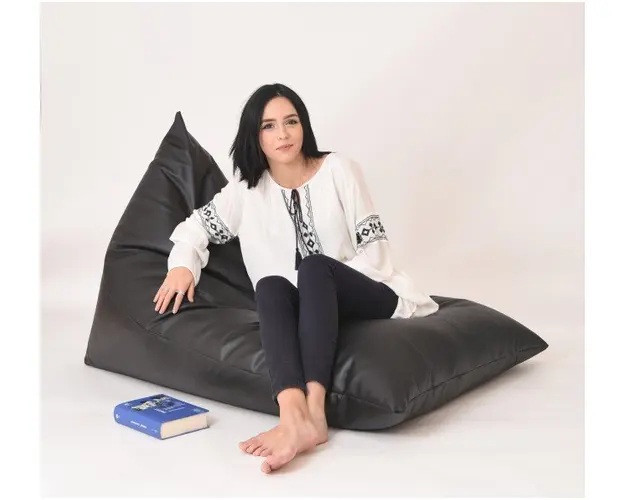 Fotoliu mediu kudos black piele ecologica umplut cu perle polistiren fotoliu sac marca pufrelax