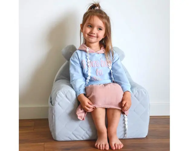 Fotoliu pentru copii Babysteps cu spatar catifea Velvet Ursulet Teddy Gri