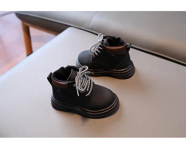 Marimi: 21 (13 cm lungime talpa interior) 22 (13,5 cm lungime talpa interior) 23 (14 cm lungime talpa interior) 24 (14,5 cm lungime talpa interior) 25 (15 cm lungime talpa interior) 26 (15,5 cm lungime talpa interior) 27 (16 cm lungime talpa interior) 28 (17 cm lungime talpa interior) 29 (17.5 cm lungime talpa interior) 30 (18 cm lungime talpa interior) Ghete neimblanite pentru baietei, din material tip piele ecologica, se inchid cu siret si cu fermoar intr-o parte. Culoare: negru Talpa: cauciuc Produsul cu denumirea Ghete neimblanite negre - Fashion face parte din brandul Sevibebe, se afla in categoria Barbie si subcategoria