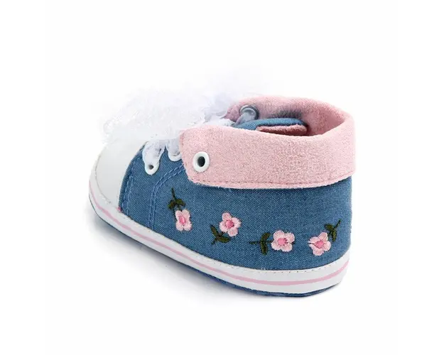 Marimi: 3-6 luni (lungimea talpitei: la interior - 10,5 cm; la exterior - 11 cm) 6-9 luni (lungimea talpitei: la interior - 11,5 cm; la exterior - 12 cm) 9 -12 luni (lungimea talpitei: la interior - 12,5 cm; la exterior - 13 cm) Ghetute pentru fetite cu floricele roz brodate, din material imitatie de blugi. Se inchid cu sireturi din dantela. Culoare: denim Talpa: material textil cu inscriptie antiderapanta. Produsul cu denumirea Ghetute fetite din blugi - Floricele brodate face parte din brandul , se afla in categoria Tetine si subcategoria