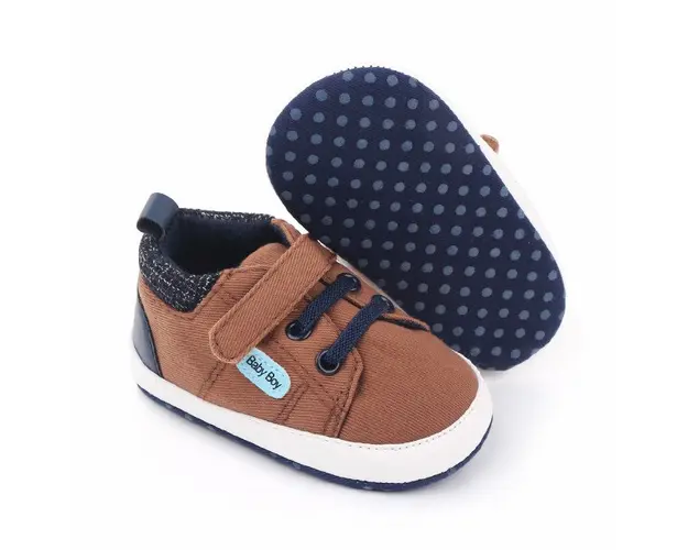 Marimi: 3 -6 luni ( lungime talpita la interior 10,5 cm, lungime talpita la exterior 11 cm) 6-9 luni ( lungime talpita la interior 11,6 cm, lungime talpita la exterior 12 cm) 9-12 luni (lungime talpita la interior 12,7 cm, lungime talpita la exterior 13 cm) Ghetute pentru bebelusi din material textil, cu inscriptie "Baby Boy" in laterala, cu insertie bleumarine la spate. Se inchid cu sireturi din elastic si bareta cu arici. Culoare: maro Talpa: material textil cu inscriptie antiderapanta Produsul cu denumirea Ghetute maro pentru baietei - Baby Boy face parte din brandul Superfinish, se afla in categoria Barbie si subcategoria