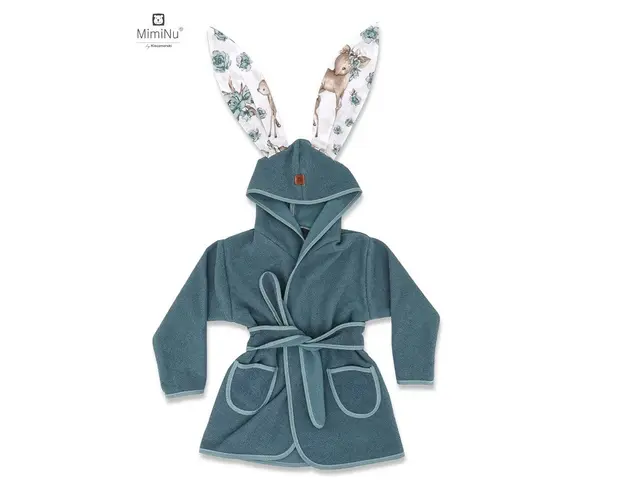 Halat de baie MimiNu cu urechi din bumbac si thermo fleece Sweet Deer Mint