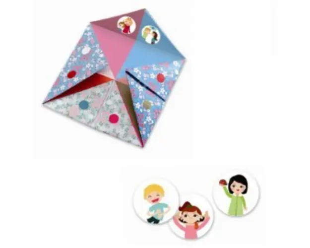 Varsta recomandata: 6-11 ani. 24 de coli decorate si 2 coli cu abtibilduri pentru ca dupa ce te-ai initiat in arta origami sa incingi o joaca pe cinste. Setul contine coli de origami, un manual de instructiuni in imagini pentru modelul sonliţa, reguli de joc. Reguli de joc: Dupa ce realizezi solnita din hartie, alege 8 abtibilduri cu activitati si lipeste-le pe partile interioare ale solnitei. Introdu degetele mari si cele aratator de la ambele maini sub marginile pliate ale solnitei. Acum esti gata sa le dai sarcini de indeplinit prietenilor tai. Roaga un prieten sa-ti spuna un numar. Daca de exemplu el spune 4, tu vei inchide si deschide solnita de 4 ori (1=in fata, 2=lateral, 3=in fata, 4=lateral). Roaga apoi prietenul sa aleaga unul dintre abtibildurile cu activitati lipite acolo unde s-a deschis solnita. Prietenul va trebui apoi sa realizeze respectiva sarcina. Lista de provocari :) Imita un calaret Atinge-ti nasul cu piciorul Razi timp de 20 de secunde Pune-i cornite prietenului tau fara ca el sa te vada Imita un ceainic Fa spagatul Inverseaza-ti pantofii Recunoaste un obiect cu ochii inchisi Imita-l pe Superman Rasuceste un brat intr-o directie si celalalt in cealalta directie Vorbeste cu usa Pupa un baiat sau o fata Imita un astronaut pe luna Arata cum se innoata bras Imita-l pe omul invizibil Ghiceste la ce ma gandesc Imita pe cineva care are nevoie la toaleta Sari cat de departe poti Gaseste o insecta Intreab-o pe profesoara ce varsta are. Confectionat din materiale non-toxice, cu vopsele non-toxice, conform reglementarilor EN71&ASTM. AVERTISMENT! Contraindicat copiilor sub 3 ani, colile pot fi rupte in parti mici. Se recomanda supravegherea copilului de catre un adult in timpul jocului. Cititi cu atentie eticheta produsului inainte de a inmana jucaria copilului. Producator: Djeco, Franta Dimensiuni (lungime x latime x inaltime): 22.00cm x 23.00cm x 1.00cm. Produsul cu denumirea Initiere origami Djeco face parte din brandul Recaro, se afla in categoria Jocuri interactive si subcategoria