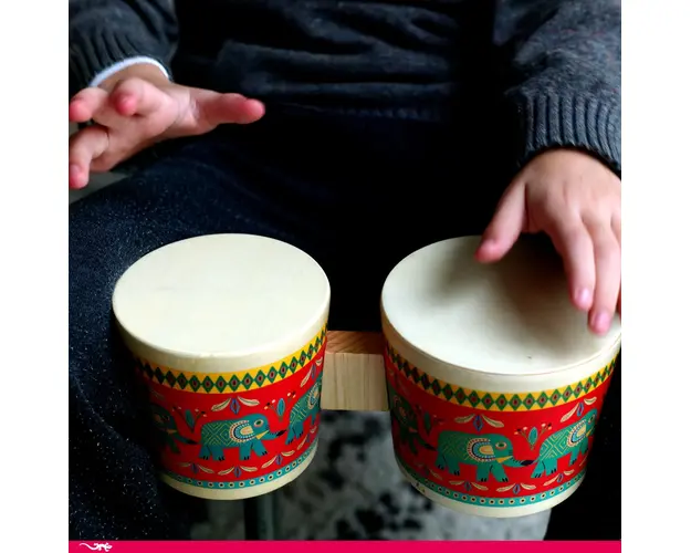 Instrument muzical Bongo Bongo din lemn decorat cu elefanti colorati. Copiii isi folosesc palmele sau degetele pentru a lovi cele doua casete de sunet, care trebuie lovite independent pentru a produce sunetul potrivit. Cadoul perfect pentru micutii muzicieni de la 3 ani in sus. Tobele de dimensiuni diferite produc sunete diferite. Asigurati-va ca casetele de sunet nu se ating de nimic altceva pentru cel mai bun sunet. Un instrument de percutie pentru introducerea copiilor in muzica si dezvoltarea simtului ritmului. Animambo, un carnaval colorat in care animalele trec in fanfara!Dimensiune toba mare: 12 x 10 cm.Dimensiune toba mica: 11 x 10 cm.Dimensiune totala: 25.5 x 12 x 10 cm.Varsta recomandata: + 3 ani.Confectionat din lemn, materiale si culori non toxice conform reglementarilor EN71 & ASTM. Certificat FSC®.AVERTISMENT: Contraindicat copiior sub 3 ani. A se utiliza strict sub supravegherea unei persoane adulte.Producator: Djeco, Franta Produsul cu denumirea Instrument muzical Bongo, Djeco face parte din brandul Recaro, se afla in categoria Jucarii muzicale bebe si subcategoria