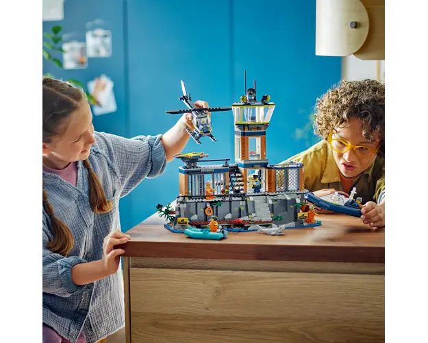 LEGO® City Insula-inchisoare (60419) gazduieşte unii dintre cei mai cunoscuţi pungaşi ai oraşului, dar aceştia au alte planuri! Te aşteapta aventuri pline de acţiune cu acest set de joaca grozav, ce include o inchisoare pe o faleza abrupta, plin cu dotari şi funcţii. Mai include şi un elicopter, o barca de poliţie, o barca gonflabila, 3 minifigurine poliţist şi 4 minifigurine prizonier, precum şi figurine caine poliţist şi rechin.Insula-inchisoare este plina cu detalii la interior pentru joaca fantezista, intre care o camera de control, o camera de odihna a poliţiştilor, un hol principal, o curte cu trapa secreta de evadare, o camera cu adapost pentru caine, o celula cu paturi şi un tunel de evadare care duce catre o mina abandonata, plus o spalatorie pentru deţinuţi, cu unelte pentru evadarea din inchisoare. Alte detalii includ un heliport şi o faleza cu o stanca desprinsa pentru o plecare exploziva.Du-ţi copilul intr-o aventura de construcţie captivanta cu aplicaţia LEGO Builder. In aplicaţie, copiii işi pot monitoriza progresul construcţiei, pot apropia şi roti seturile in 3D pentru a le vizualiza din toate unghiurile pe masura ce le construiesc. Produsul cu denumirea Insula-inchisoare face parte din brandul Coletto, se afla in categoria Jucarii outdoor si subcategoria Produse noi