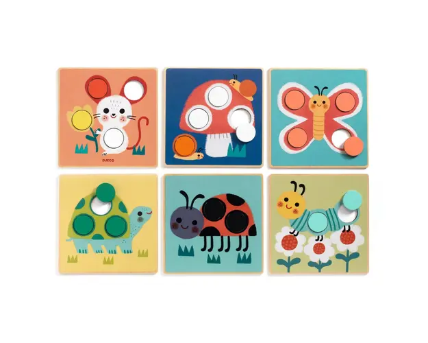 Joc educativ Spotimage este perfect pentru a-i invata pe copii despre culori! Alege o tabla cu 2, 3 sau 4 gauri si ajuta-i sa plaseze jetoanele de culoarea corespunzatoare pentru a completa imaginea. Jetoanele groase sunt usor de prins, iar dimensiunea jocului este de 17 x 17 x 0.6 cm. Continutul include 6 planse ilustrate din lemn si 19 jetoane colorate din lemn. Varsta recomandata este de +2 ani. Fabricat din lemn certificat FSC®. AVERTISMENT! Contraindicat copiilor sub 2 ani. A se folosi sub directa supraveghere a unei persoane adulte. Producator: Djeco. Produsul cu denumirea Joc educativ Spotimage, Djeco face parte din brandul Recaro, se afla in categoria Grafix si subcategoria Produse noi