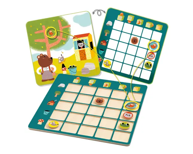 Topologix, invata sa te orientezi in spatiu! Unde este soarecele? E in galeata! Un joc despre spatialitate in care jucatorii identifica pozitiile a 5 animale in raport cu 5 elemente spatiale prin plasarea token-urilor pe tabla. Un joc simplu si distractiv.Pe spatele cartilor sunt furnizate solutii, astfel incat copiii sa isi poata corecta propriile puzzle-uri. Regulile de joc sunt foarte detaliate pentru a ajuta parintii sa configureze mai usor activitatea. Un joc inventiv care ii invata pe copii despre incadrarea in spatiu.Continut: o tabla de lemn (20x20 cm), 20 de carti de provocare cu solutii pe spate si 5 token-uri din lemn. Regulile de joc sunt disponibile in 10 limbi.Varsta recomandata: 4 - 6 ani. Confectionat din lemn si vopsele non toxice cu certificare FSC®.AVERTISMENT! Contraindicat copiilor sub 3 ani. A se folosi sub directa supraveghere a unei persoane adulte.Producator: Djeco, Franta Produsul cu denumirea Joc de logica Eduludo Topologix, Djeco face parte din brandul Recaro, se afla in categoria Grafix si subcategoria Produse noi