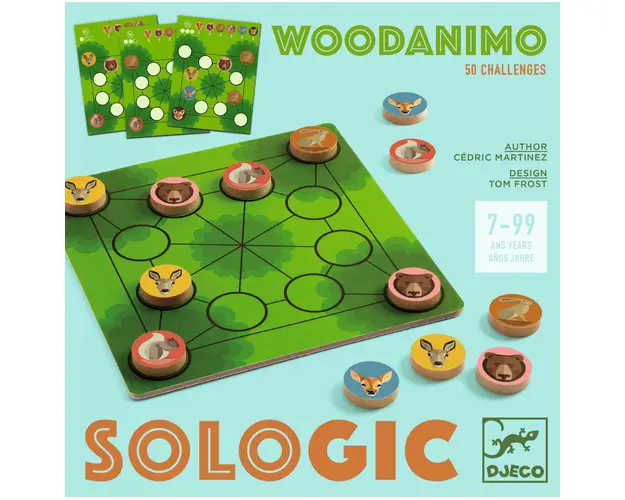 Joc logic Woodanimo din colectia Sologic. In acest joc de puzzle, ursii, caprioarele, iepurii, vulpile si caprioarele nu pot fi asezate una langa alta, in timp ce veveritele sunt inseparabile. Este nevoie de gandire si deductie pentru a completa diferitele carti de provocare. Un joc de logica pe care il poti juca singur sau in grup. 3 niveluri de dificultate. O solutie posibila pentru fiecare provocare. Solutiile provocarilor sunt furnizate. Continut: tabla de joc, 50 de carti, 24 de jetoane de lemn. Reguli de joc disponibile in 10 limbi. Varsta recomandata: 7 - 99 ani. Confectionat din lemn si carton certificate FSC®. Producator: Djeco Franta. Produsul cu denumirea Joc de logica Woodanimo, Djeco face parte din brandul Recaro, se afla in categoria Grafix si subcategoria Produse noi