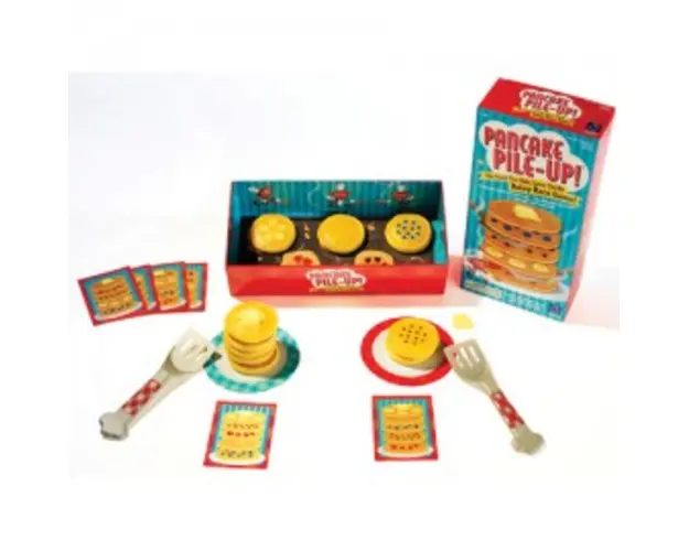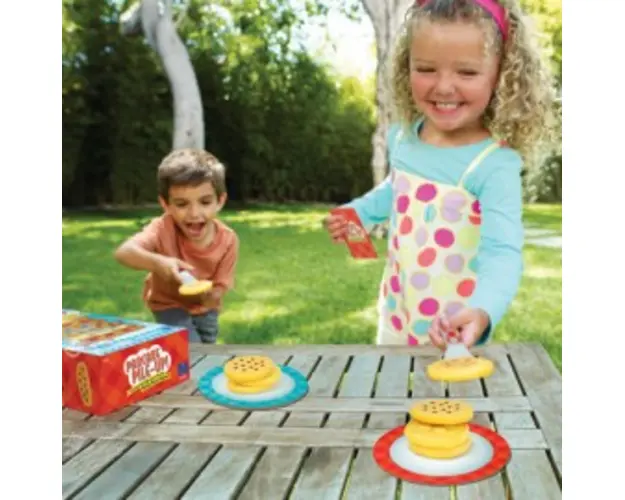 Porneste in marea intrecere a clatitelor impreuna cu ceilalti bucatari! Jocul este unul tip stafeta, menit sa dezvolte spiritul competitiv, concentrarea, echilibrul si coordonarea dar si sa le formeze abilitatea de a urmari o secventa. Setul include: 10 clatite masurand aprox. 6 cm diferite (cu afine, capsuni, banane, ciocolata sau clatita simpla), 2 cuburi de unt, 2 spatule, 2 farfurii, tavita, 10 carduri si instructiuni de joc. Copiii trebuie sa aseze clatitele una cat una, in ordinea afisata pe card. Castiga echipa care a a ordonat corect clatitele si a pus prima cubuletul de unt deasupra. Jocul este ideal pentru activitati recreative in aer liber. Varsta recomandata: 4 ani+ Produsul cu denumirea Joc stafeta - intrecerea clatitelor face parte din brandul Educational insights, se afla in categoria Jocuri interactive si subcategoria