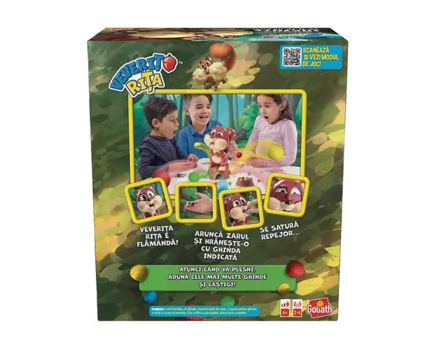 Caracteristici Joc Veverita Rita: Iarna se apropie, a venit timpul ca veveritele sa isi stranga alunele Da cu zarul, apoi hraniti-o pe Rita cu aluna de culoarea potrivita Fii atent la pleoapele ei - cand se inchid, e gata sa plesneasca! Fiti primul care aduna toate alunele ce au cazut din copacul veveritei Rita Completeaza rezerva secreta pentru a castiga! Numar de jucatori: 2-4 Varsta recomandata: +4 ani Produsul cu denumirea Joc Veverita Rita face parte din brandul Goki, se afla in categoria Jucarii magnetice si subcategoria