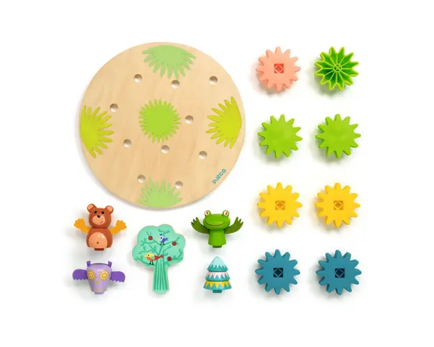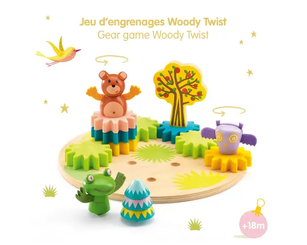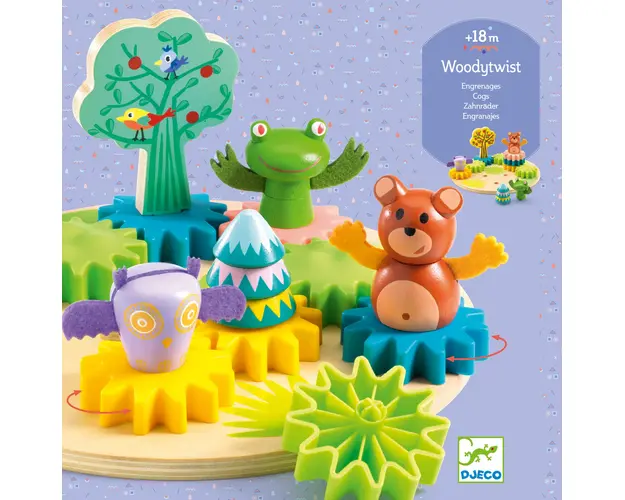 Woodytwist este un joc captivant cu angrenaje, avand tematica animalelor din padure. Copiii pot plasa rotile dintate in gaurile de pe tabla de lemn ilustrata pentru a crea o scena minunata intr-o padure fermecata. Acestia vor trebui sa gaseasca calea potrivita pentru a aduce la viata copacii si animalele din padure. Stivuirea pieselor creeaza o scena 3D, dezvoltand abilitatile de observatie, coordonare si motricitate fina. Continut: baza din lemn, 8 roti dintate din plastic si 5 piese din lemn si pasla. Dimensiune joc: 26 x 26 x 7 cm. Varsta recomandata: +18 luni. Confectionat din lemn, plastic si pasla, conform reglementarilor EN71&ASTM. AVERTISMENT: Contraindicat copiilor sub 18 luni. A se utiliza sub directa supraveghere a unui adult. Producator: Djeco, Franta Produsul cu denumirea Joc Woodytwist, Djeco face parte din brandul Recaro, se afla in categoria Grafix si subcategoria Produse noi