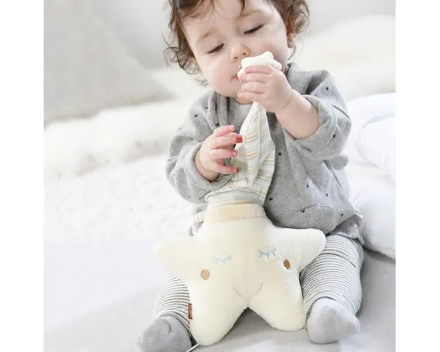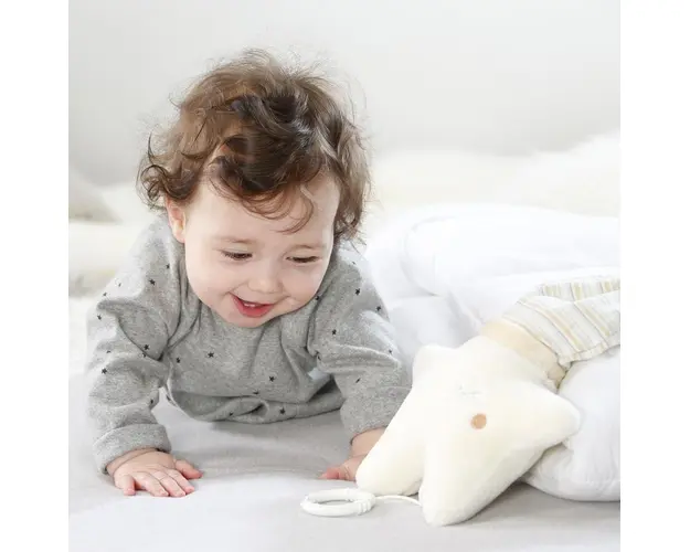 Micutul tau va descoperi lumea sunetelor cu aceasta jucarie simpaticaCaracteristicisunetele, materialul placut la atingere din care este confectionata si culorile vesele sunt ideale pentru dezvoltarea Produsul cu denumirea Jucari muzicala Steluta somnoroasa face parte din brandul Fehn, se afla in categoria Leagane copii si subcategoria