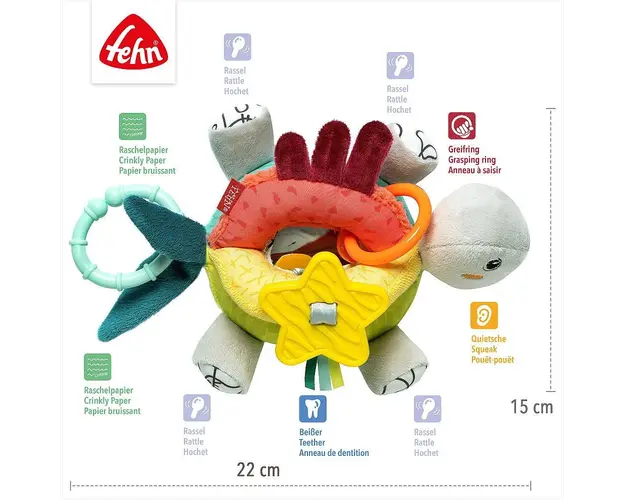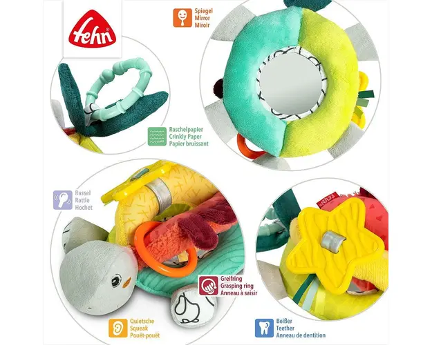 Distractia este acum pretutindeni fie acasa sau in deplasarenbspCaracteristiciaceasta are o multime de elemente ce vor starni curiozitatea micutilor oglinda, sunet chitait, inel pentru dentitie si ine Produsul cu denumirea Jucarie cu activitati Broasca testoasa face parte din brandul Fehn, se afla in categoria Leagane copii si subcategoria
