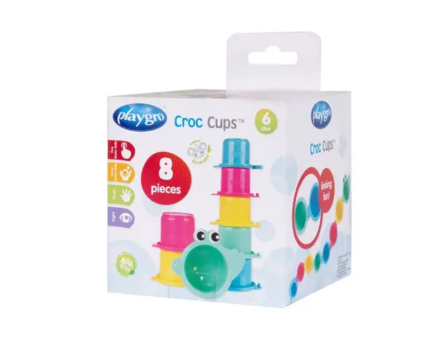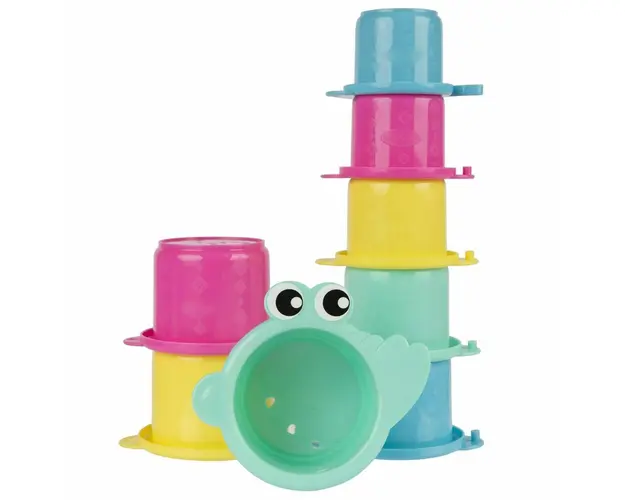Stivuiti-le si doborati-leCei mici se vor distra ore intregi cu aceste pahare grozave de stivuire si de legatura.Perfecte pentru baie, in piscina, plaja sau pentru timpul general de joaca.Exista 8 cup Produsul cu denumirea Jucarie de baie Playgro Croc Cups 8 piese face parte din brandul Playmobil, se afla in categoria Igiena si ingrijire si subcategoria