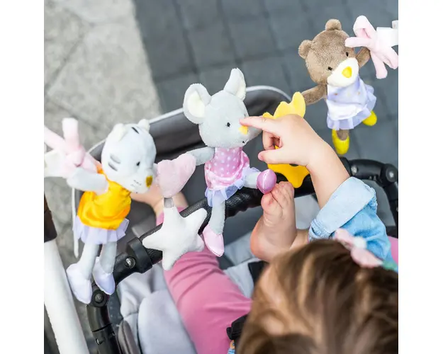 Jucria educaional BALLERINAS introduce copilul icircntr-o lume divers de culori, sunete i forme. Avacircnd forma unui lan, jucria poate fi prinsa pe diferite scaune auto sau crucioare. Datorit acestui Produsul cu denumirea Jucarie educativa balerina Babyono face parte din brandul Ok baby, se afla in categoria Leagane copii si subcategoria
