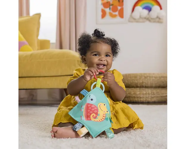 Mini paturica cu animalute vesele de la Bright Starts va fi la indemana micutului tau, fara ca acesta sa o piarda.Datorita inelului de prindere, puteti atasa paturica la carucior sau scoica, pentru ca Produsul cu denumirea Jucarie mini paturica cu animalute vesele Bright Starts face parte din brandul Berg toys, se afla in categoria Leagane copii si subcategoria