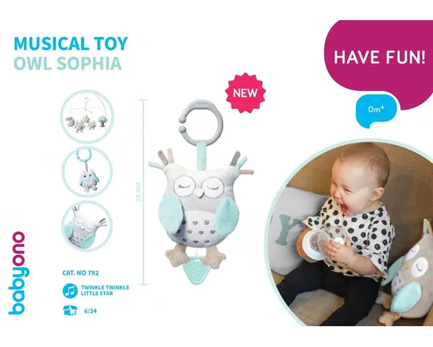Jucarie muzicala Baby Ono pentru carucior Bufnita Sofia