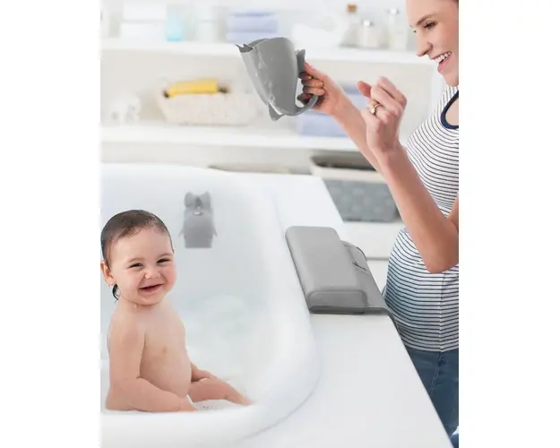 Baita micutului va fi o activitate mai placuta, datorita ajutorului oferit de kit-ul pentru baie Moby.Avand in componenta patru piese esentiale (cana pentru clatit, un suport pentru genunchi si coate Produsul cu denumirea Kit produse esentiale pentru baie Moby gri Skip Hop face parte din brandul Skip hop, se afla in categoria Igiena si ingrijire si subcategoria