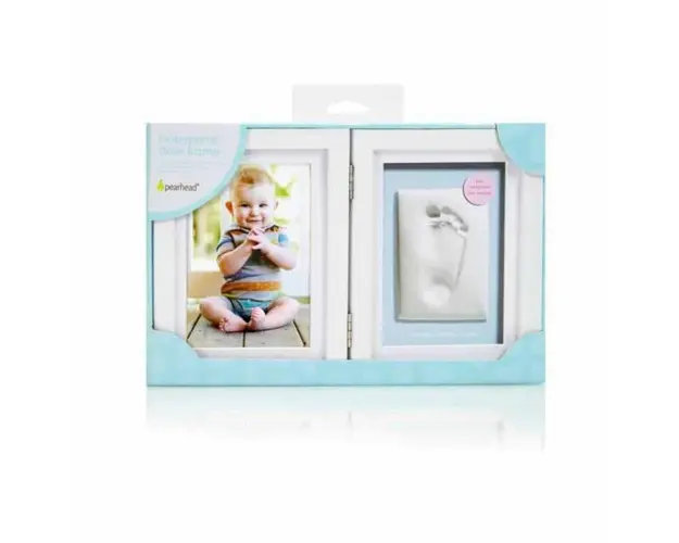 Kit rama foto dubla cu amprenta mulaj manuta sau piciorus alba Pearhead