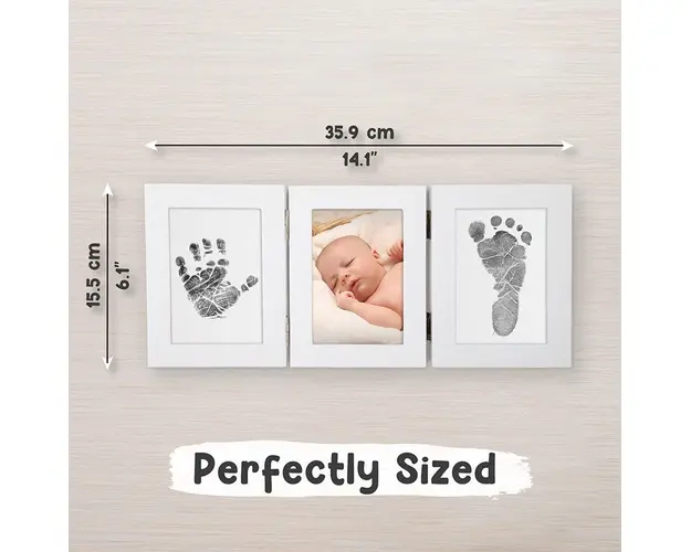 Kit rama foto tripla mobila cu cerneala pentru manuta si piciorus rama alba culoare ink rosu