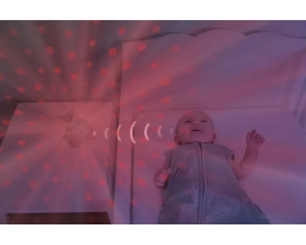 Proiecteaza picaturi de apa pe tavanul si peretii camerei, in 4 culori diferite rosu, albastru, verde sau multicolor.3 sunete melodii linistitoare sunetul valurilor oceanului, bataile inimii si cantec Produsul cu denumirea Lampa de veghe Wally Blue face parte din brandul Zazu kids, se afla in categoria Costume carnaval copii si subcategoria