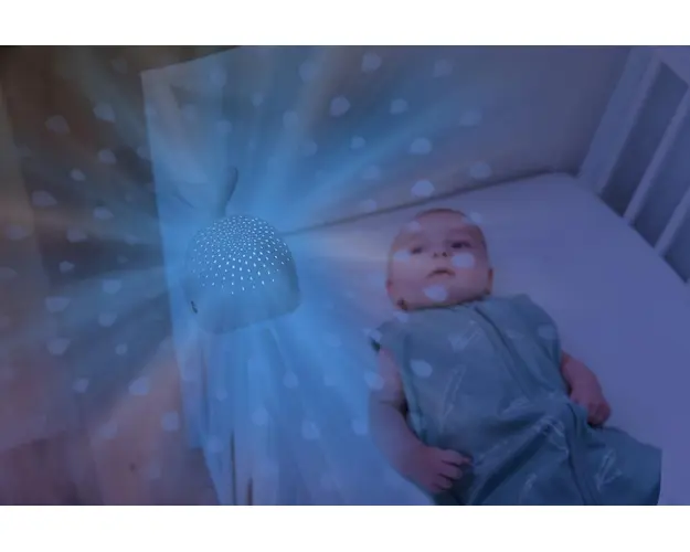 Proiecteaza picaturi de apa pe tavanul si peretii camerei, in 4 culori diferite rosu, albastru, verde sau multicolor.3 sunete melodii linistitoare sunetul valurilor oceanului, bataile inimii si cantec Produsul cu denumirea Lampa de veghe Wally Roz face parte din brandul Zazu kids, se afla in categoria Costume carnaval copii si subcategoria