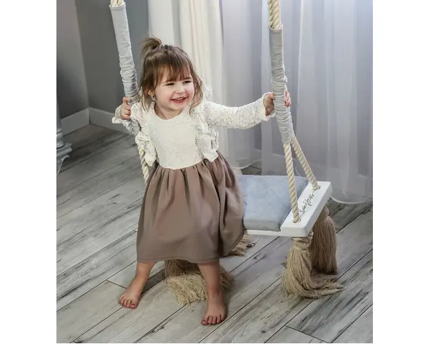 Leagan din lemn si spuma by BabySteps pentru copii WoodSwing catifea Velvet Ecri