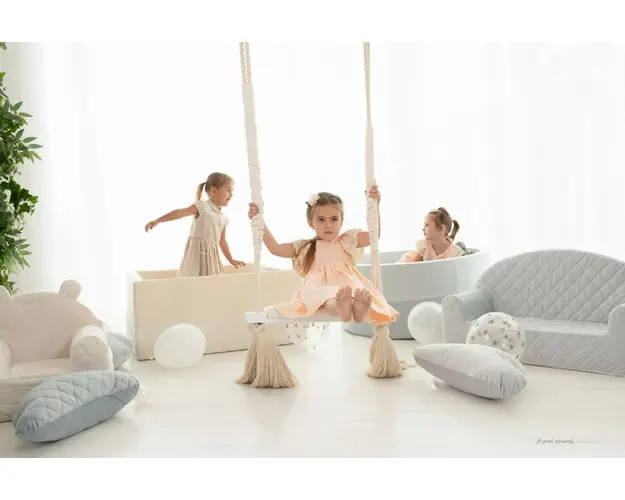 Leagan din lemn si spuma by BabySteps pentru copii WoodSwing catifea Velvet Grey