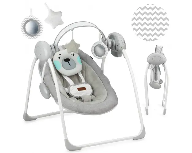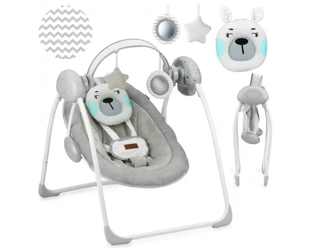 Leagan pentru bebelusi, MoMi LISS Bear, 5 viteze de balansare, Cronometru, Alimentare baterii, 8 melodii, 2 jucarii incluse, Centura in 5 puncteLeaganul alimnetat cu baterii, are 5 viteze de balansare Produsul cu denumirea Leagan pentru bebelusi MoMi Liss Bear GriTurcoaz face parte din brandul Mii, se afla in categoria Costume carnaval copii si subcategoria