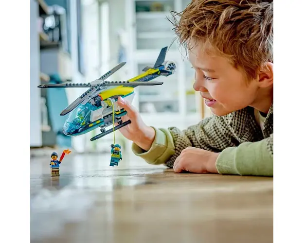 Caracteristici Lego City Elicopter de Salvare 60405: Adu-i o bucurie eroului tau cotidian cu setul LEGO® City Elicopter de salvare de urgenta (60405) Conceput pentru copii de 6 ani si mai mari, acest set include un elicopter cu un cockpit cool, rotoare care se invart, un compartiment pentru incarcatura care se deschide si un vinci functional Nu trebuie decat sa adaugi minifigurinele excursionist, pilot si salvator, facla de semnalizare si un strop de imaginatie si multe ore de joaca plina de actiune sunt garantate Du-ti copilul intr-o aventura de constructie a unei jucarii cu aplicatia LEGO Builder In aplicatie, copiii pot explora si salva seturi, isi pot monitoriza progresul constructiei si pot apropia si roti modelele pentru a le vizualiza din toate unghiurile pe masura ce le construiesc Seturile de joaca LEGO® City contin vehicule realiste, structuri detaliate si personaje inspiratoare pentru joaca fantezista fara limite Combina acest set distractiv cu altele (vandute separat) din gama LEGO City Vehicule grozave pentru aventuri si mai palpitante Numar de piese: 226 Dimensiuni elicopter: 9 x 31 x 26 cm LEGO 60405 Produsul cu denumirea Lego City Elicopter de Salvare 60405 face parte din brandul Lionelo, se afla in categoria Jucarii magnetice si subcategoria