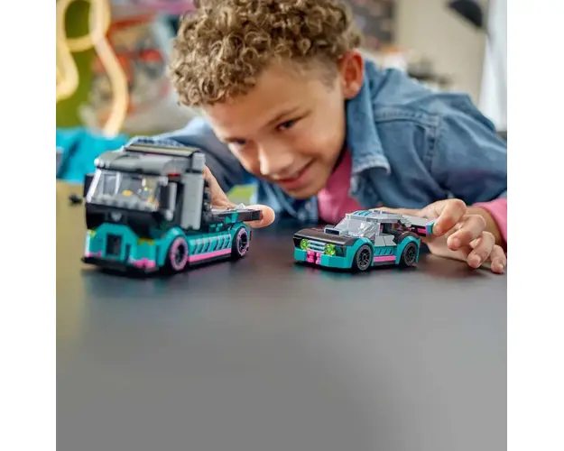 Caracteristici Lego City Masina de Curse si Camion Transportator 60406: Accelereaza entuziasmul jucatorilor cu setul LEGO® City Masina de curse si camion transportator de masini (60406), cadoul perfect care alimenteaza pasiunea copiilor pentru masini si camioane de jucarie Conceput pentru copii de 6 ani si mai mari, setul include un camion de curse cu o rampa de incarcare functionala si o masina de curse cool, cu suspensie coborata si aparatoare largi Setul mai include si minifigurinele pilot de curse si sofer de camion pentru povesti si aventuri interpretate pe roluri Setul Masina de curse si camion transportator de masini include un ghid de constructie tiparit, usor de urmat, si instructiuni 3D detaliate in aplicatia LEGO Builder In aplicatie, copiii pot apropia si roti modelele pentru a le vizualiza din toate unghiurile pe masura ce le construiesc Copiii cresc inconjurati de vehicule si masini uimitoare, iar cu seturile de constructie LEGO City Vehicule grozave, ei pot explora indeaproape modele realiste si personaje distractive care inspira joaca imaginativa fara restrictii Numar de piese: 328 Dimensiuni camion: 7 x 17 x 6 cm LEGO 60406 Produsul cu denumirea Lego City Masina de Curse si Camion Transportator 60406 face parte din brandul Lionelo, se afla in categoria Jucarii magnetice si subcategoria