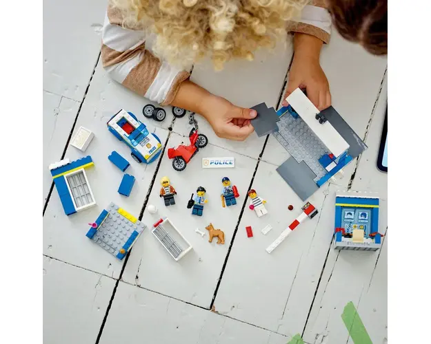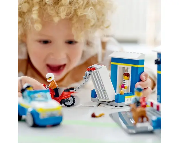 Caracteristici Lego City Urmarire la sectia de politie 60370: Introdu copiii intr-o lume a jocului fantezist cu setul LEGO City Urmarire la sectia de politie (60370), destinat copiilor de 4+ ani Cladirea sectiei are o bariera care se ridica si adaposteste un birou si o inchisoare cu functie de evadare Setul mai contine si o masina de politie si o motocicleta cu care fuge infractorul, precum si 2 minifigurine agent de politie si 2 minifigurine infractor Acest set de joaca 4+ cu o constructie usoara include un element LEGO Caramida pentru incepatori, instructiuni ilustrate si aplicatia LEGO Builder, prietenul digital din timpul constructiei, cu instrumente intuitive de apropiere si rotire care permit copiilor sa-si vizualizeze modelul din toate unghiurile pe masura ce-l construiesc Seturile de joc LEGO City includ cladiri bogate in dotari, vehicule realiste si personaje distractive care stimuleaza joaca pe roluri fantezista, fara limite, bazata de eroi cotidieni si evenimente din viata reala Numar de piese: 172 Dimensiuni sectia de politie: 12 x 26 x 12 cm LEGO 60370 Produsul cu denumirea Lego City Urmarire la sectia de politie 60370 face parte din brandul Lionelo, se afla in categoria Jucarii magnetice si subcategoria