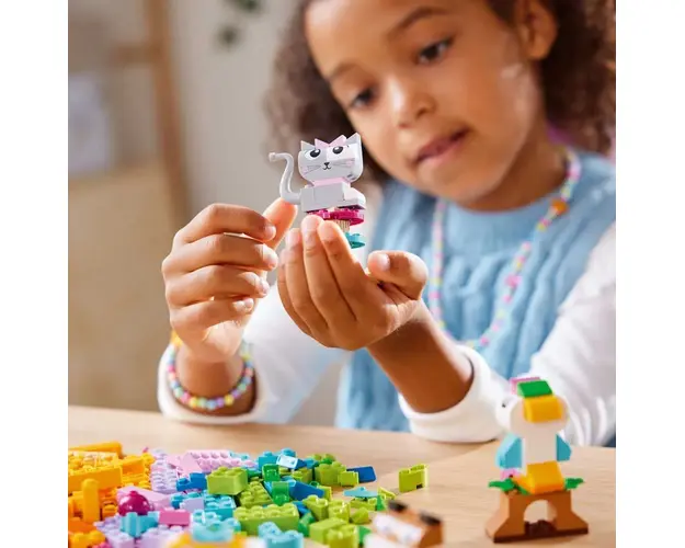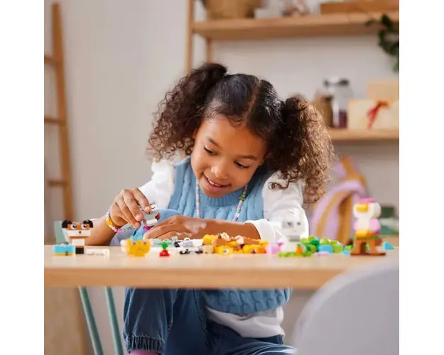 Caracteristici Lego Classic Animale de Companie Creative 11034: Copiii de 5 ani si mai mari care iubesc animalele isi pot manifesta pasiunea pentru animalele de companie cu acest set de constructie creativ cu animale LEGO® Classic Animalute creative (11034) este un amestec de caramizi de constructie care ofera inspiratie, cu ghiduri simple care sa-i indrume pe copii sa construiasca cu usurinta o serie de animale colorate Este un mod grozav de a incuraja creativitatea copiilor la construit Avand la dispozitie 450 de caramizi de constructie LEGO, incluzand piese speciale cu ochi si guri, precum si instructiuni detaliate, copiii pot construi un caine cu un bol si un os, o pisica pe un stativ, un hamster cu un mar, un iepure cu un morcov si o pasare pe o creanga Apoi, folosind sugestiile incluse pentru culori, forme si functii alternative, pot reconstrui animalele intr-un mod nou si distractiv. Setul contine un ghid cu 10 idei pentru a da startul constructiei libere Jucariile LEGO Classic sunt pline de idei si inspiratie si dau ocazia parintilor sa se distreze construind alaturi de copiii lor si sa fie martori la etapele acestora de dezvoltare Numar de piese: 450 Dimensiuni: Catel: 5 cm inaltime Pisica pe stativ: 7 cm inaltime LEGO 11034 Produsul cu denumirea Lego Classic Animale de Companie Creative 11034 face parte din brandul Lionelo, se afla in categoria Jucarii magnetice si subcategoria