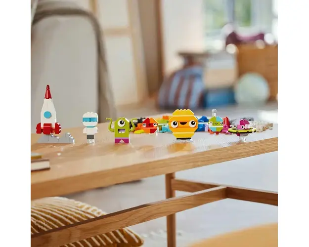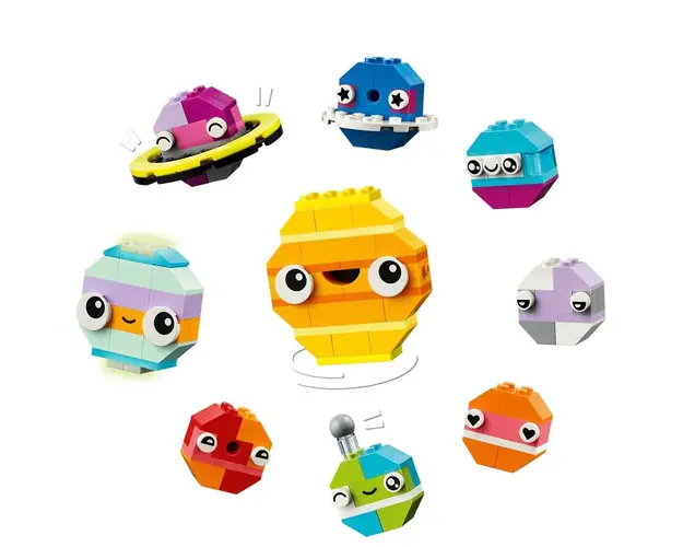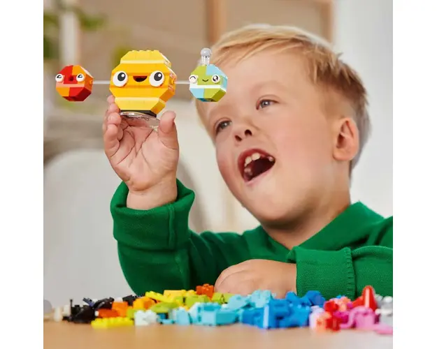 Caracteristici Lego Classic Planete Creative 11037: Jucaria LEGO® Classic Planete creative (11037) ii lanseaza pe micii astronauti si astronomi de 5+ ani intr-o calatorie a explorarii creative Kitul cu modele usor de construit, precum un sistem solar, un astronaut si o naveta spatiala, este ideal pentru copiii care doresc sa construiasca, sa se joace si sa ajunga cu indrazneala acolo unde niciun constructor LEGO n-a mai ajuns vreodata! Copiii asambleaza caramizile colorate pentru a construi o racheta, un extraterestru, un astronaut si un minisistem solar care include soarele si planetele Marte, Pamant si Saturn cu inelele sale Modelele spatiale pot fi personalizate prin utilizarea variantelor de culori, forme, ochi, expresii, iar un suport permite rotirea lor Setul include chiar si caramizi fotoluminescente pentru vizibilitate pe intuneric Creativitatea cosmica nu se opreste datorita sugestiilor pentru constructii alternative, intre care un sistem solar complet, din 8 planete Ghidurile si functiile digitale sunt disponibile in aplicatia LEGO Builder Jucariile LEGO Classic sunt pline de idei si inspiratie si dau ocazia parintilor sa se distreze construind alaturi de copiii lor si sa fie martori la etapele acestora de dezvoltare Numar de piese: 450 Dimensiuni racheta: 12 cm LEGO 11037 Produsul cu denumirea Lego Classic Planete Creative 11037 face parte din brandul Lionelo, se afla in categoria Jucarii magnetice si subcategoria
