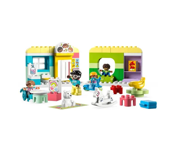 Caracteristici Lego Duplo Viata la Cresa 10992: Micutii de 2+ ani se distreaza alaturi de prieteni cu setul LEGO DUPLO Orasul meu Viata la cresa (10992) Acest set cu jucarie educativa le permite copiilor sa interpreteze obiceiuri zilnice in timp ce invata despre numere si culori Setul contine o multime de activitati creative care le permit parintilor si copiilor sa interpreteze scenarii de joaca sociala, exact ca intr-o cresa reala Copiii pot realiza o pictura cu degetele in sectiunea de arta sau pot savura o gustare Micutul in scaun cu rotile poate cobori in viteza pe rampa pentru a se alatura prietenilor sai care se plimba cu scuterul in curte Parintii isi pot invata copiii si despre importanta spalarii mainilor in baie, unde se afla o toaleta si o chiuveta Asemenea tuturor jucariilor LEGO DUPLO, acest set contine caramizi viu colorate, care sa-i atraga pe cei mici sa le ridice si sa le foloseasca la construit, in vreme ce covorul textil cu numere adauga un element tactil Seturile LEGO DUPLO ii ajuta pe copii sa inteleaga lumea pe care o observa in jur, infatisand locuri usor de recunoscut si incluzand o mare diversitate de personaje Numar de piese: 67 Dimensiuni: 13 x 19 cm LEGO 10992 Produsul cu denumirea Lego Duplo Viata la Cresa 10992 face parte din brandul Lionelo, se afla in categoria Jucarii magnetice si subcategoria
