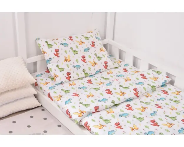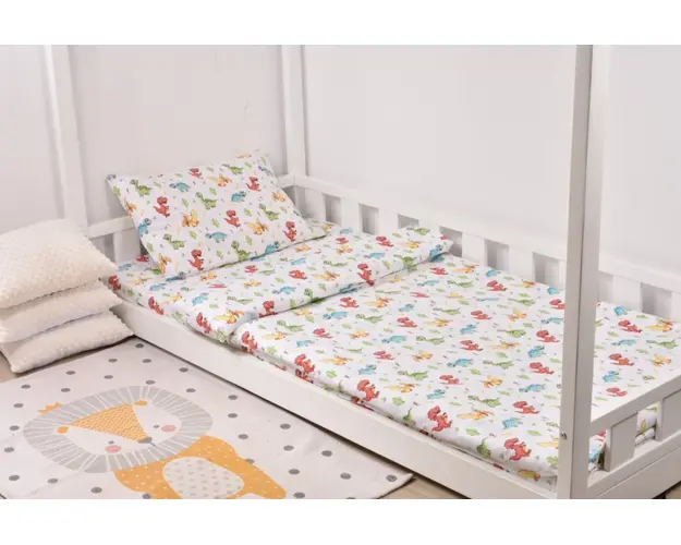 Lenjerie pat casuta 90x200 cm model dinozauri
