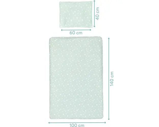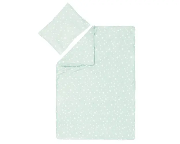 Set lenjerie pentru patut copii, 2 piesenbspSet format din hus pentru plapum i pernestur respirabil i prietenoas cu pieleaMaterial 100 bumbacLavabil la 40degCnbspDimensiuninbsppern 40 x 60 cm,ptur 100 Produsul cu denumirea Lenjerie de pat din Jerse 2 piese Star mint Fillikid face parte din brandul Fillikid, se afla in categoria Costume carnaval copii si subcategoria