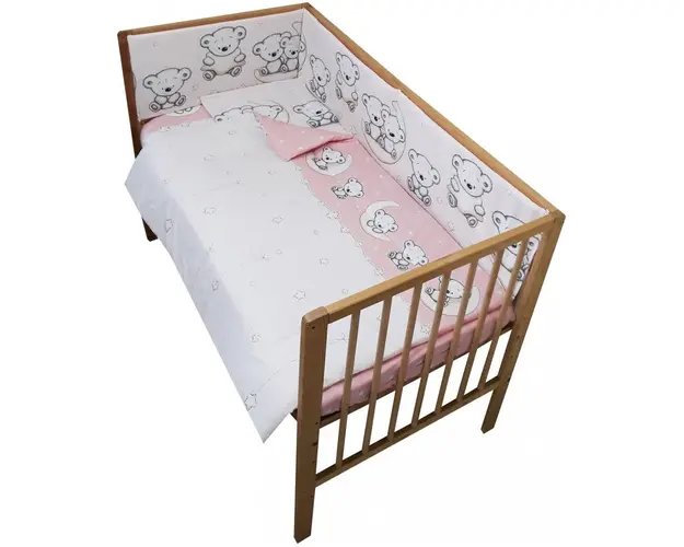 Lenjerie patut 120x60 cm cu 4 piese Nichiduta Teddy on the Moon Pink