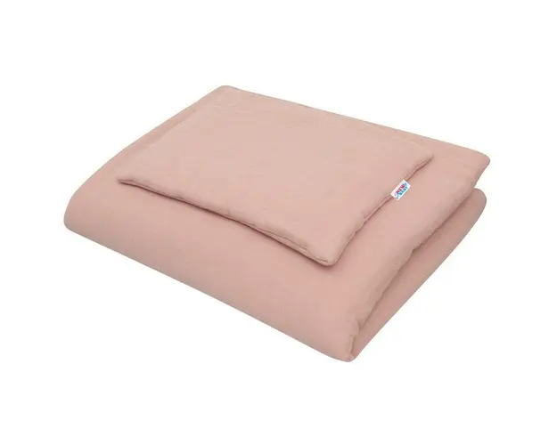 Lenjerie patut 2 piese New Baby din muselina cu perna si pilota 100x70 cm Pink