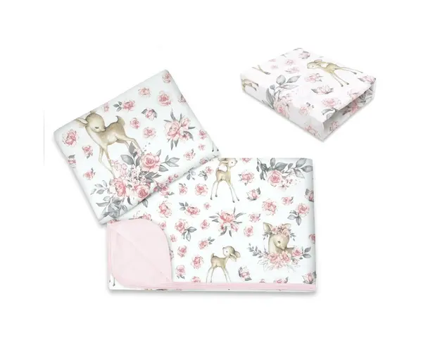 Lenjerie patut cu 3 piese MimiNu 120x60 cm din bumbac Sweet Deer Pink