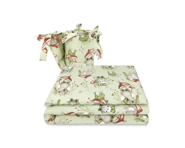 Lenjerie patut 3 piese Qmini cu protectie laterala 120x60 cm Frogs