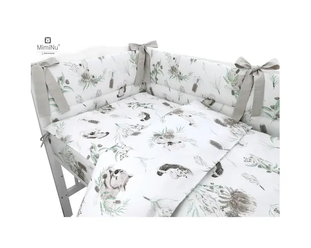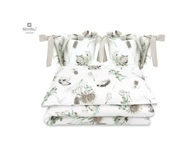 Lenjerie patut cu 4 piese MimiNu din bumbac cu protectii laterale 120x60 cm Australian Animals Beige