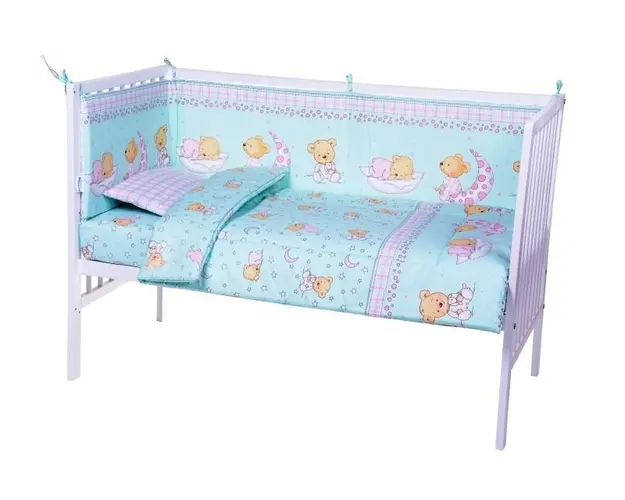 Lenjerie patut cu 5 piese 120x60 cm Ursuleti Turquoise