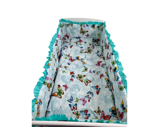 Lenjerie patut cu 5 piese Croitoria Noastra Roi de fluturi vernil 120x60 cm