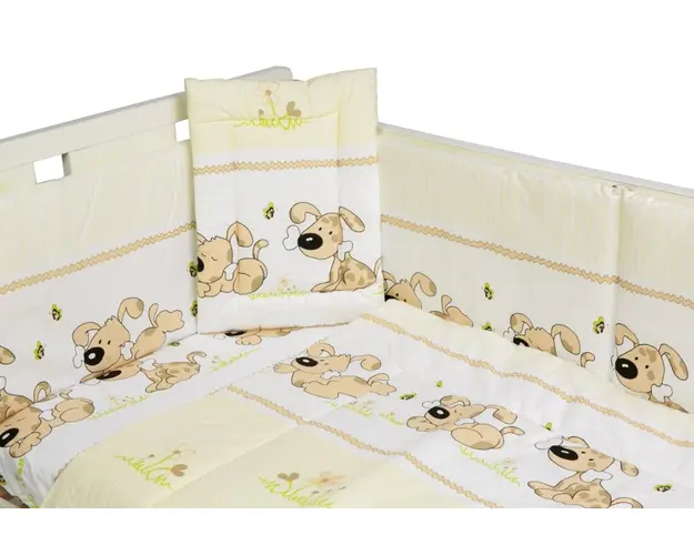 Contine perinita slim, intrucat bebelusii nu au voie sa doarma pe pernite inalte. Aceasta este de o grosime ideala. O plapuma cu suprafata din bumbac 100, cu o umplutura usoara, moale si termoizolan Produsul cu denumirea Lenjerie patut cu 5 piese Puppy Beige face parte din brandul Nichiduta, se afla in categoria Costume carnaval copii si subcategoria