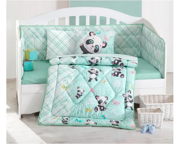 Lenjerie patut cu 6 piese Baby Ranforce Panda Mint